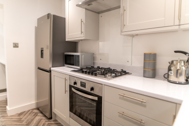 Through to the sparkling new kitchen – with oven, gas 5 ring hob, full size fridge freezer and washer dryer, you have everything you need for a true home-from-home experience here at Harbour Heights.